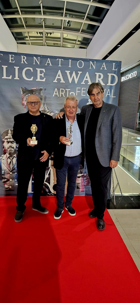 Altro premio e momento molto sentito della serata, è stata la consegna di due premi speciali destinati a delle opere artistiche dell’International Police Association Association di Monfalcone rappresentata da Giorgio Bottò e Pierpaolo Freschi, il primo per l’emozionante dipinto “La Scala degli Eroi” emblematica composizione pittorica dedicata ai poliziotti morti in servizio e il secondo autore di toccanti poesie dedicate alle forze dell’Ordine. Insieme, portano avanti il progetto culturale “PittaPoesie” che coniuga la lirica della poesia alla bellezza della pittura in esposizioni artistiche a sostegno delle Forze dell’Ordine.